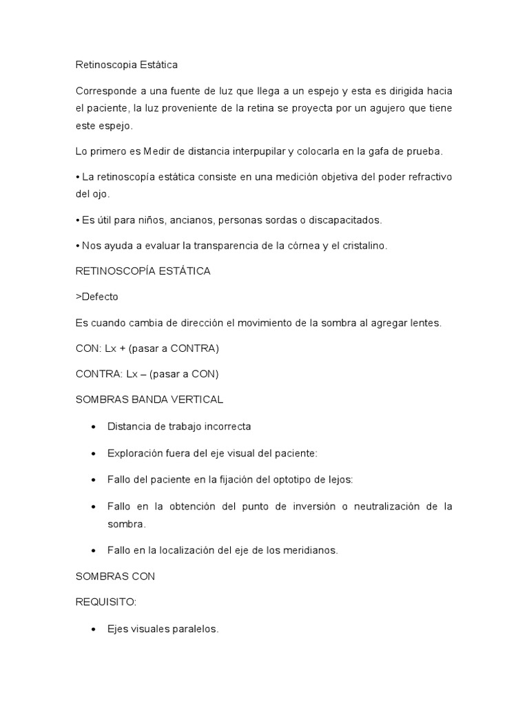 Retinoscopia Estática PDF Ojo humano Percepción visual